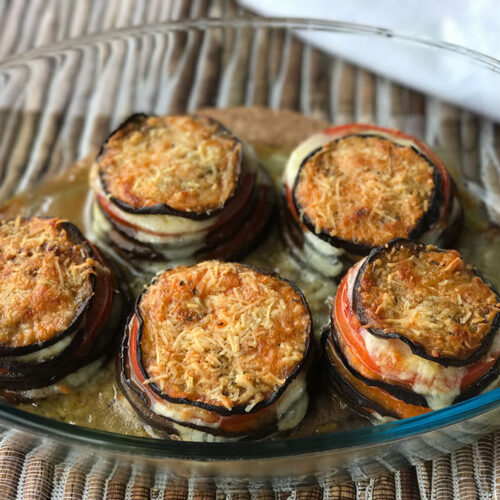 - Calentar aceite en la sartén y cocinar las berenjenas, una vez que estan blandas y doradas colocarlas sobre una placa de horno, ponerles salsa de tomate, orégano, parmesano y mozzarella