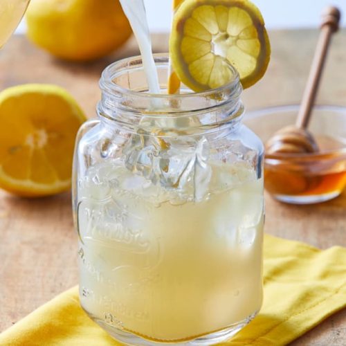 - Llevamos el hielo al vaso de licuadora, el jugo de limón, agua, la miel y procesamos